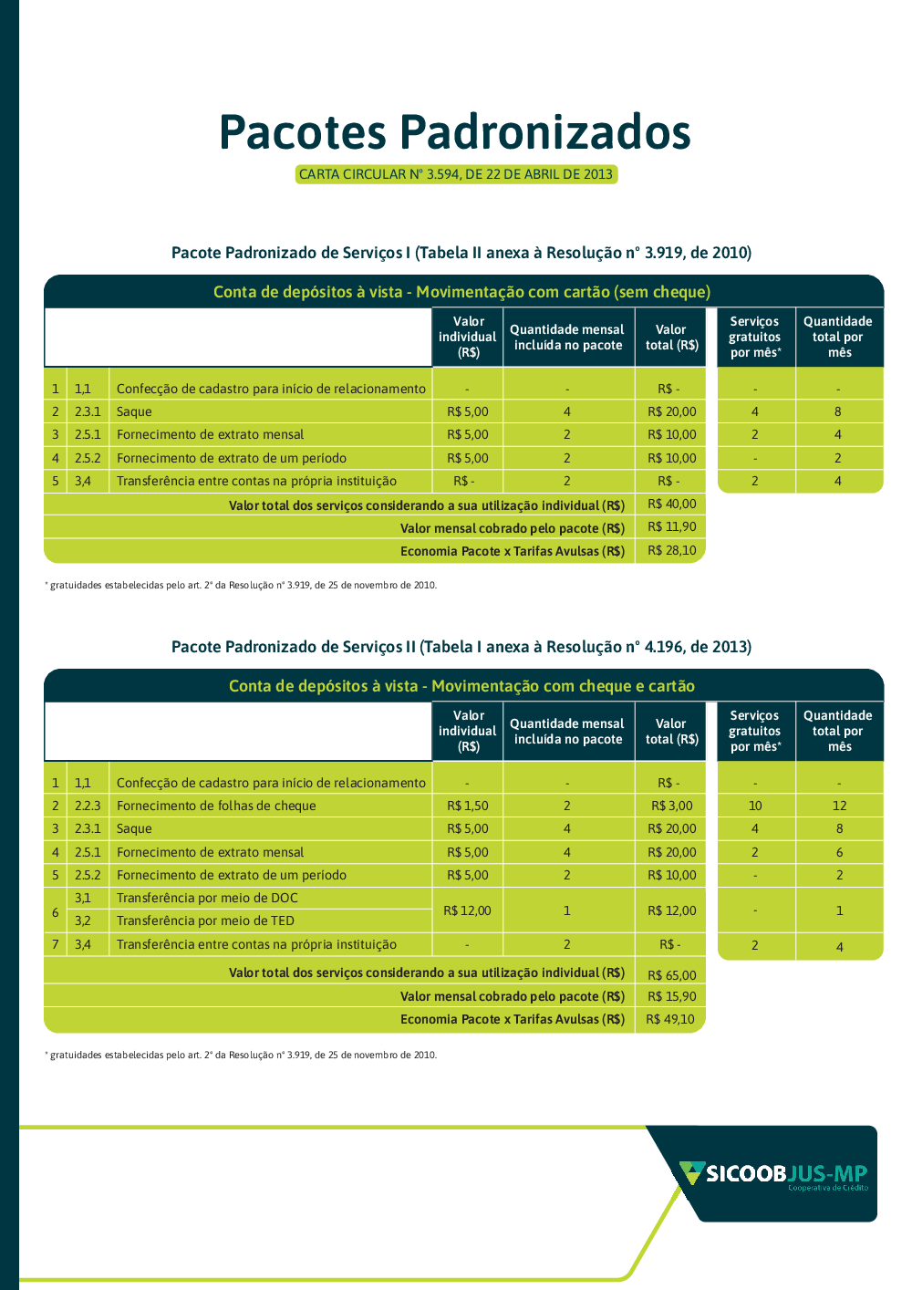 Tabela Geral de Tarifas - Sicoob JUS-MP