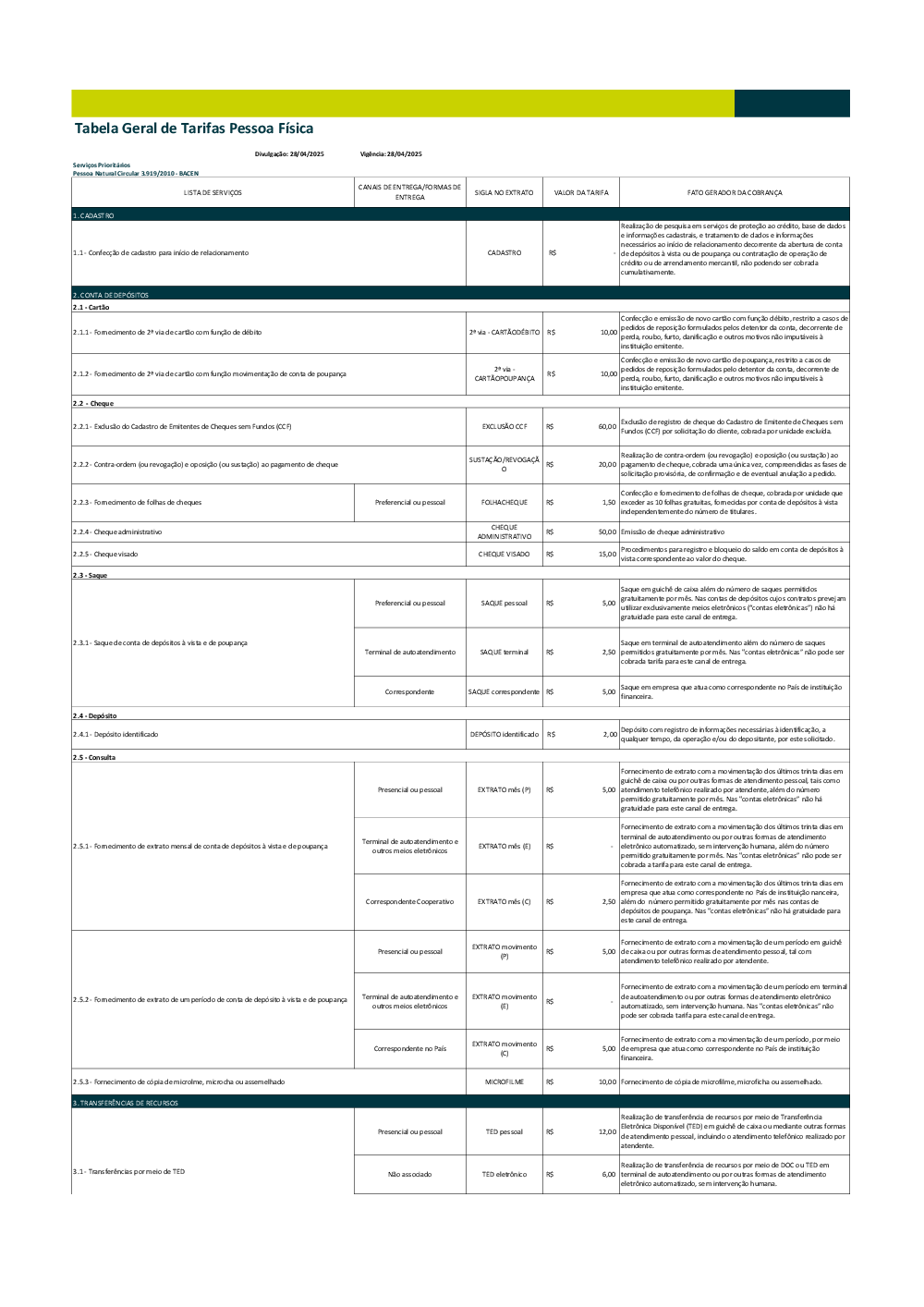 Tabela Geral de Tarifas - Sicoob JUS-MP