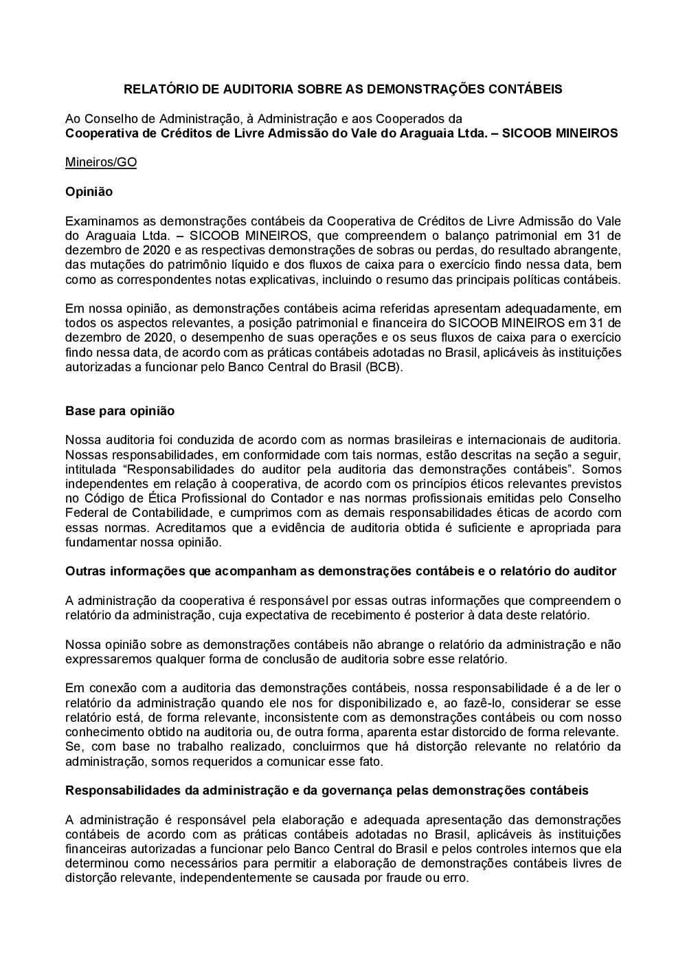 Microsoft Word - MINUTA - Relatório de Opinião - Sicoob Mineiros - 31.12.20