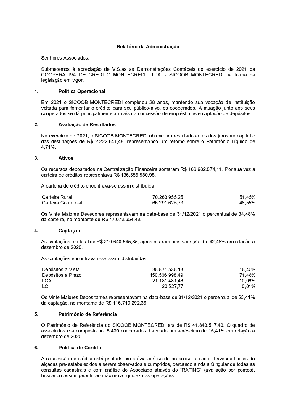 Relatórios - Sicoob Montecredi