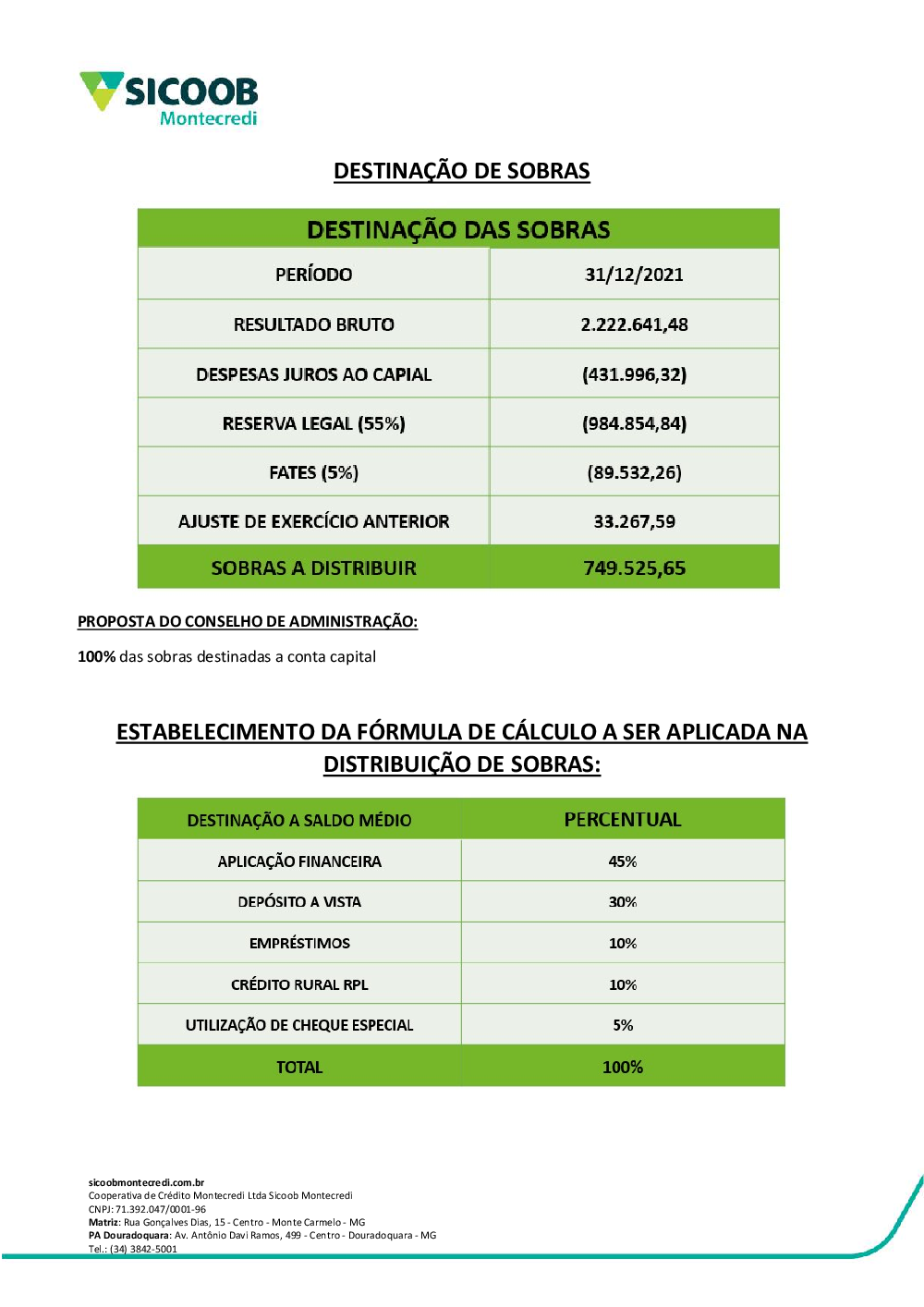 DESTINAÇÃO DAS SOBRAS