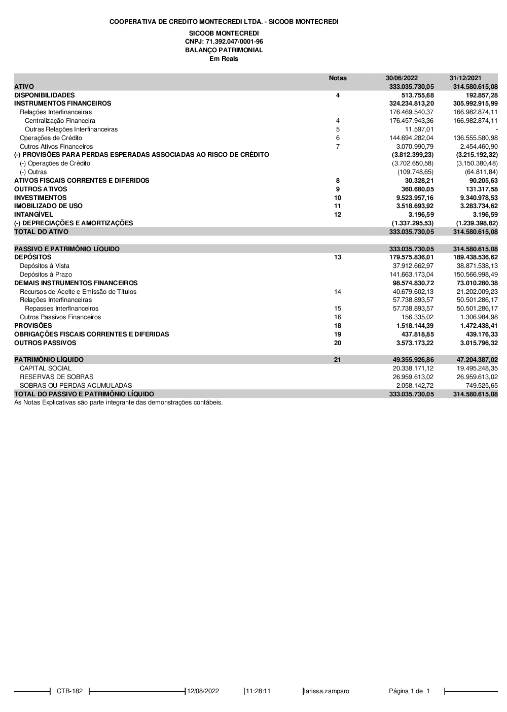 Relatórios - Sicoob Montecredi