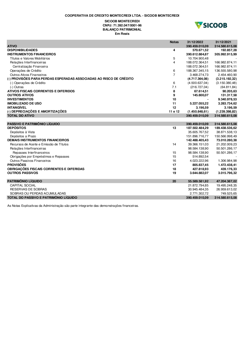 Relatórios - Sicoob Montecredi