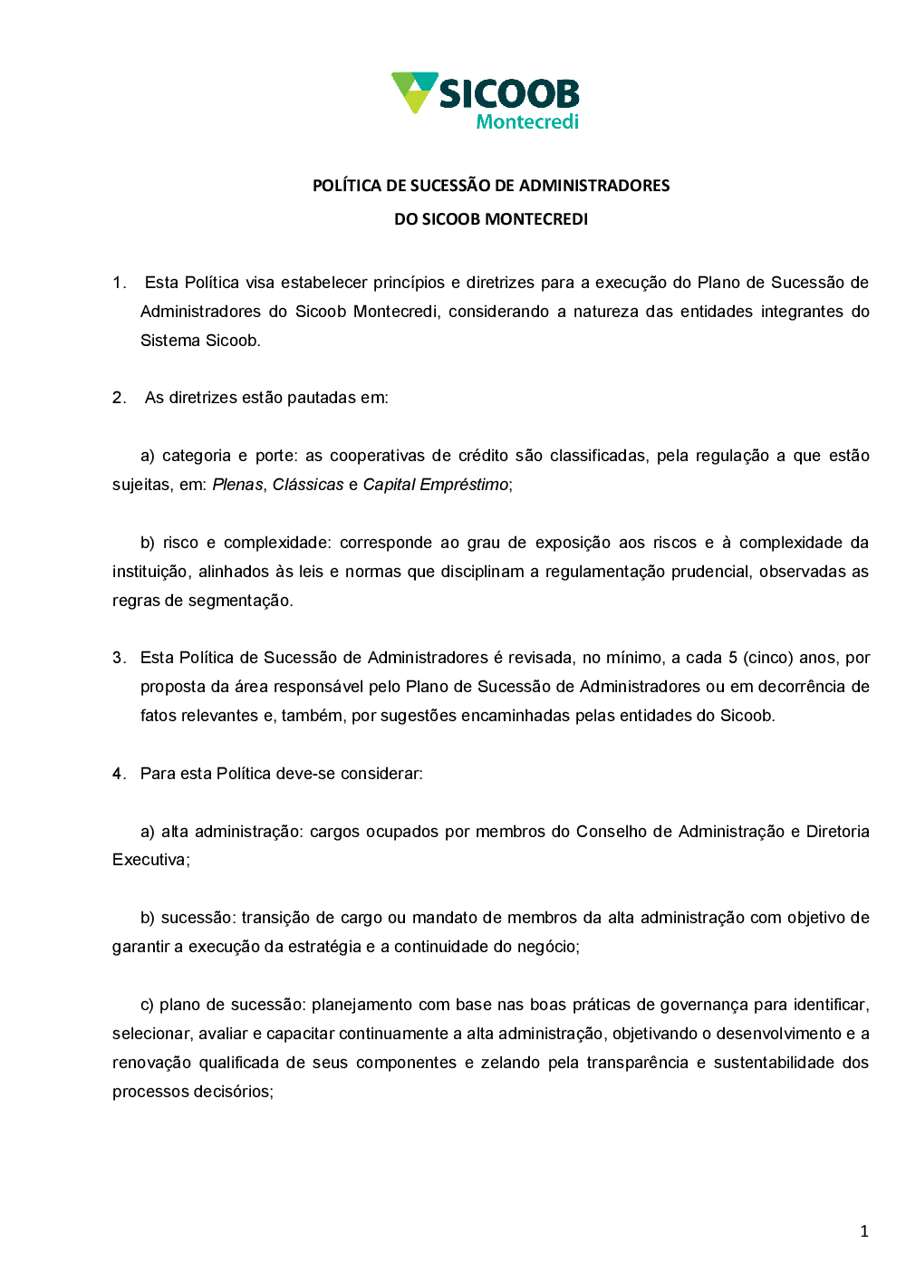 Política e Plano de Sucessão de Administradores do Sicoob Montecredi