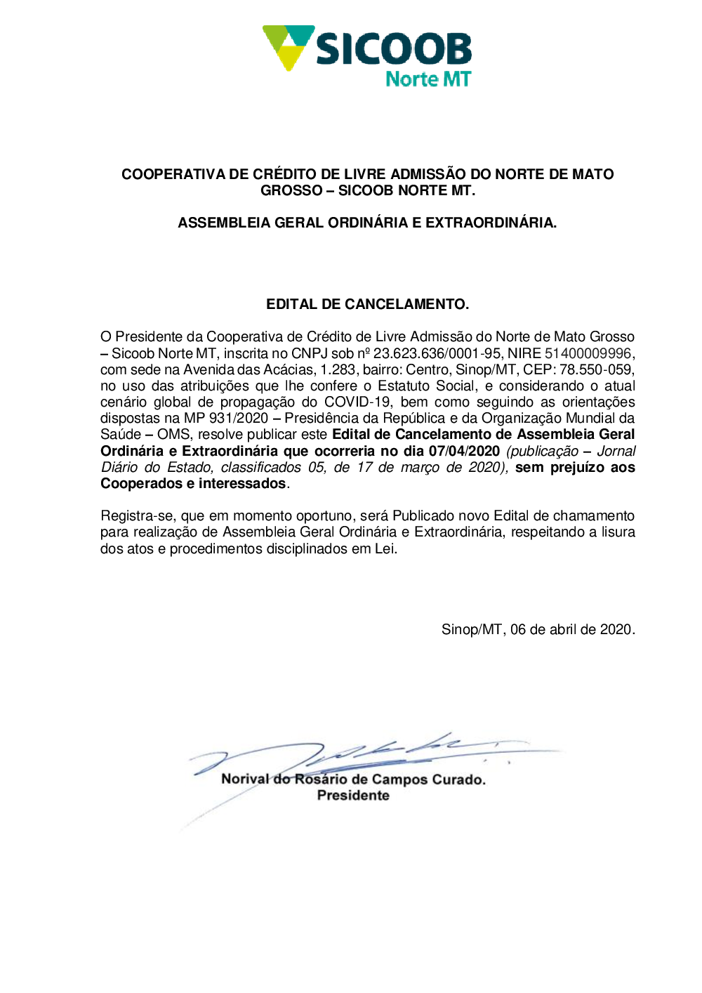 - Edital de Cancelamento AGOE - Sicoob Norte MT