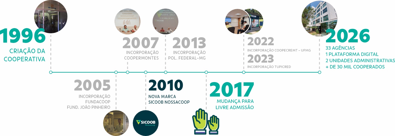 Em 2017, após 20 anos atuando em um segmento restrito, o Sicoob Nossacoop aprovou, em Assembleia, a livre admissão de seu quadro social, passando a operar com todos os públicos de interesse das regiões registradas em seu Estatuto Social.