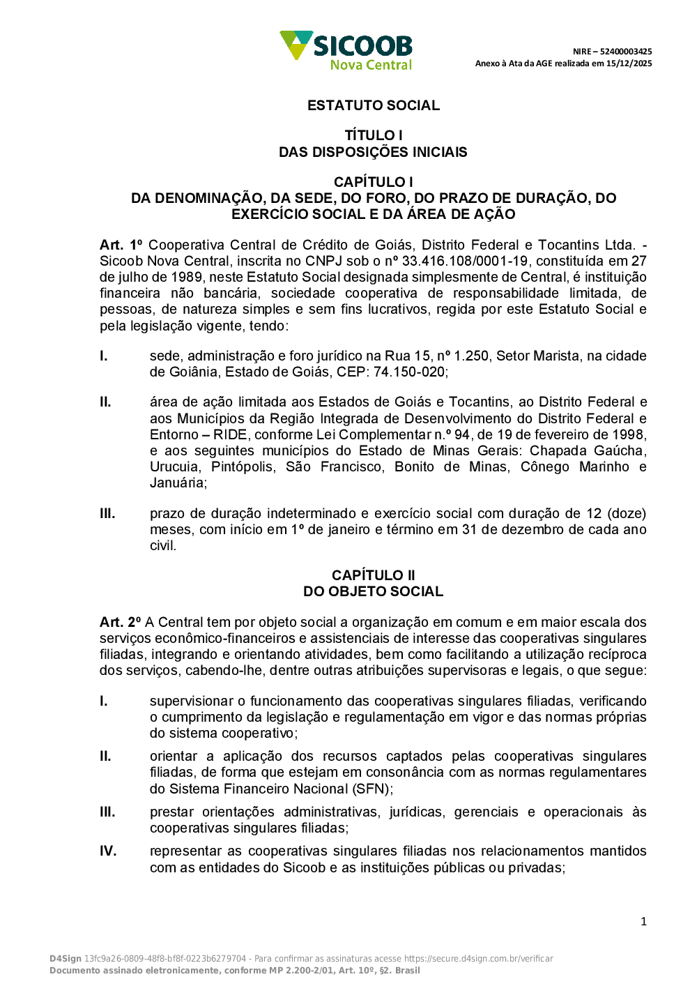 Estatuto Social do Sicoob Nova Central