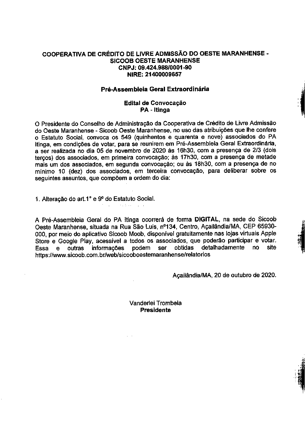 Assembleias - Sicoob Oeste Maranhense