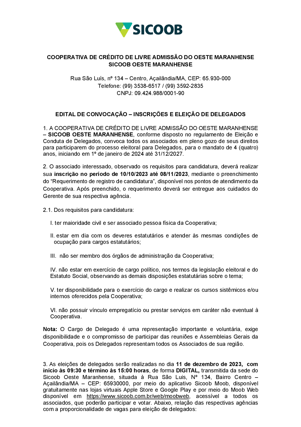 Assembleias - Sicoob Oeste Maranhense