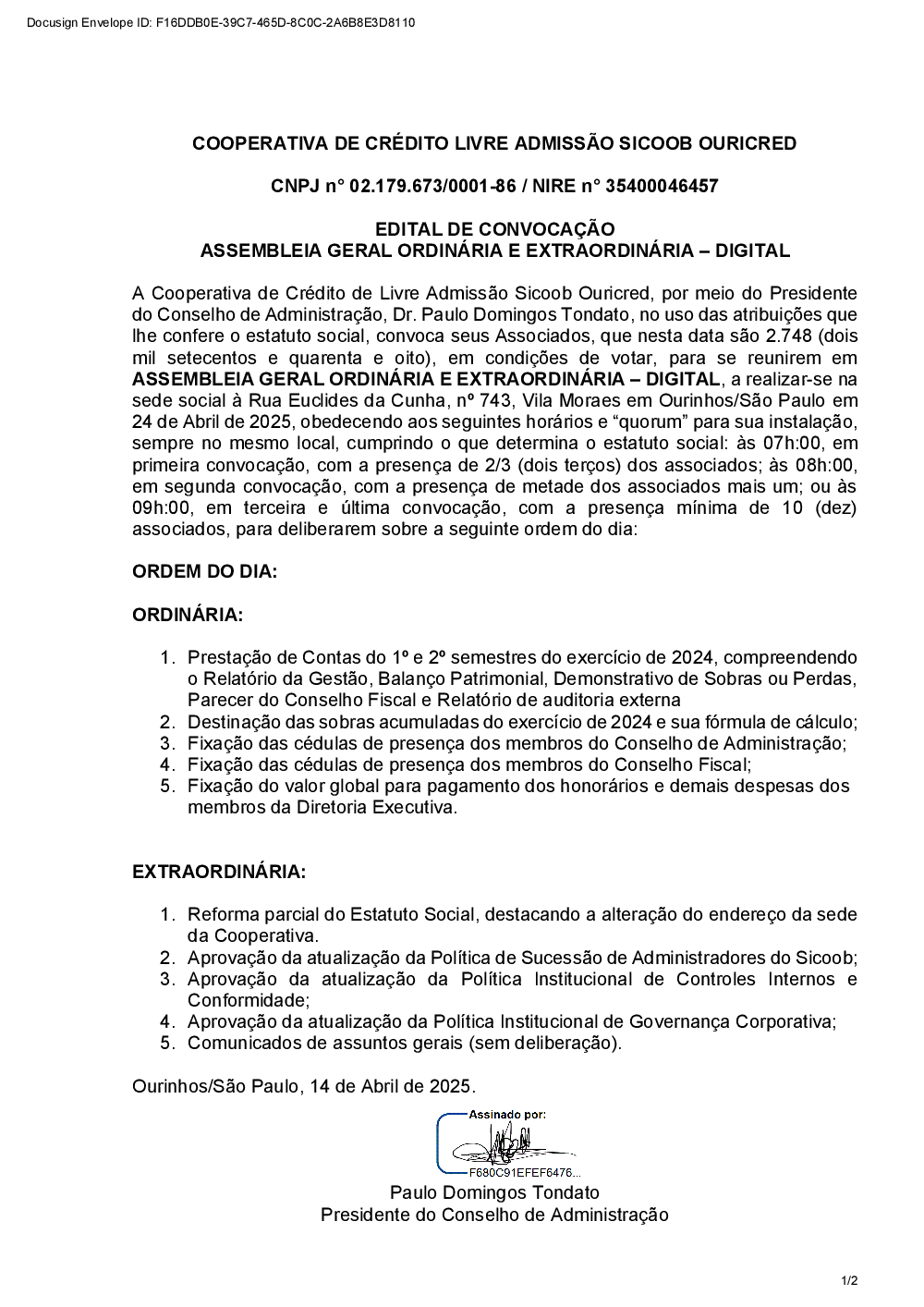 Assembleia Geral Ordinária e Extraordinária Digital 2025