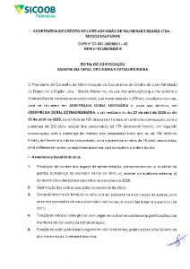 Minuta do Edital de Convocação Publicado - Sicoob Palmeiras