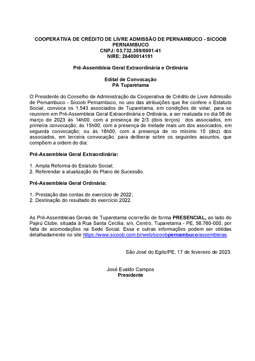 Assembleias - Sicoob Pernambuco