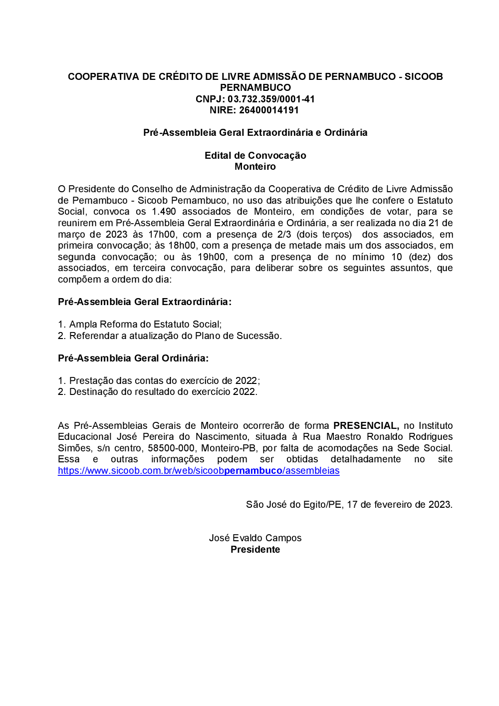 Assembleias - Sicoob Pernambuco