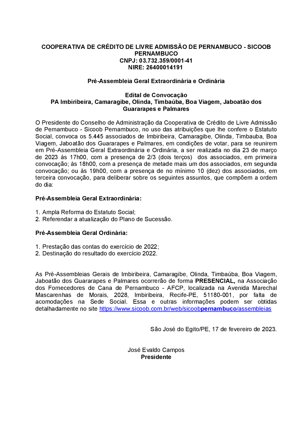Assembleias - Sicoob Pernambuco