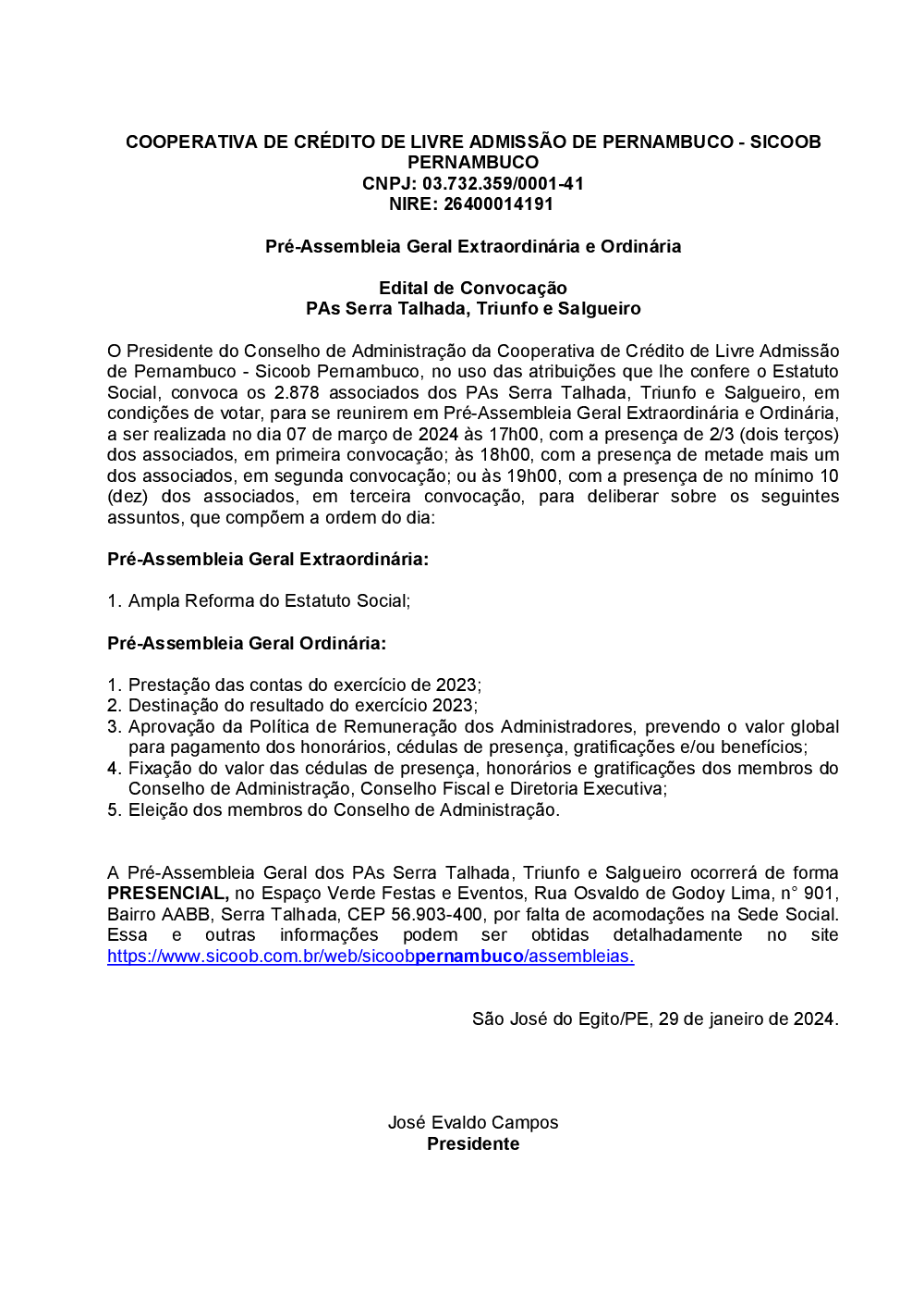 (Microsoft Word - Edital de Convocação - PRÉ AGE.AGO - Serra Talhada, Triunfo e Salgueiro)