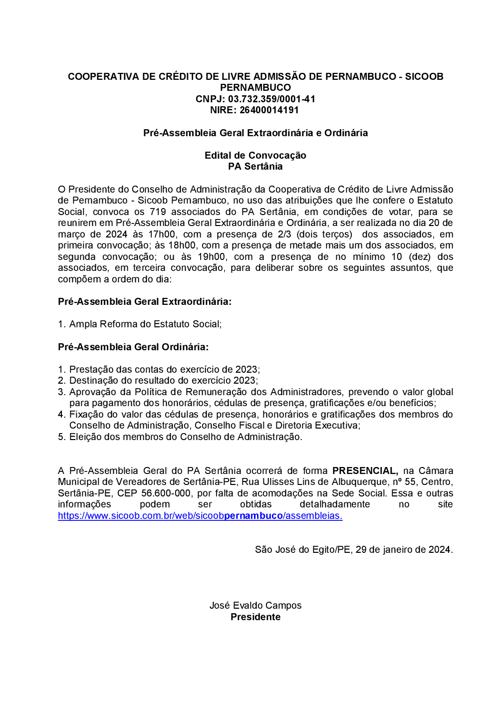 (Microsoft Word - Edital de Convocação - PRÉ AGE.AGO - SERTANIA)