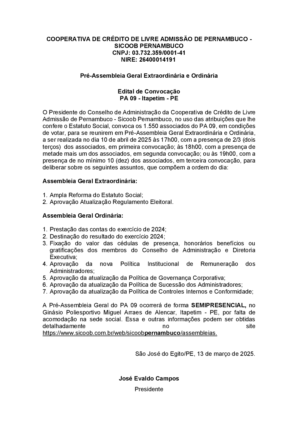 Assembleias - Sicoob Pernambuco