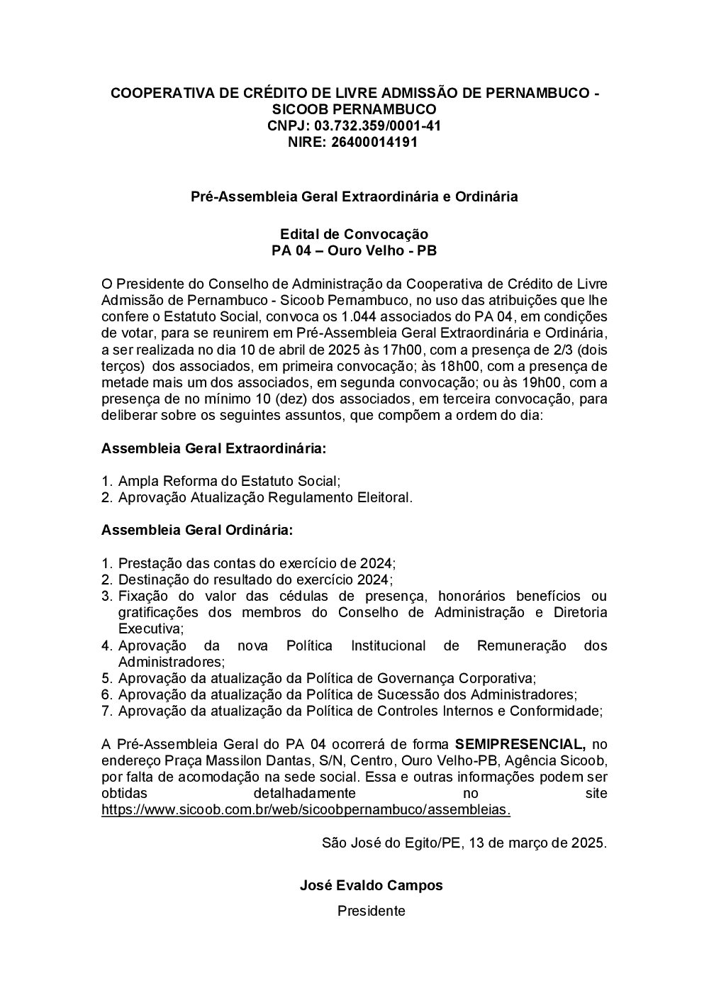 Assembleias - Sicoob Pernambuco