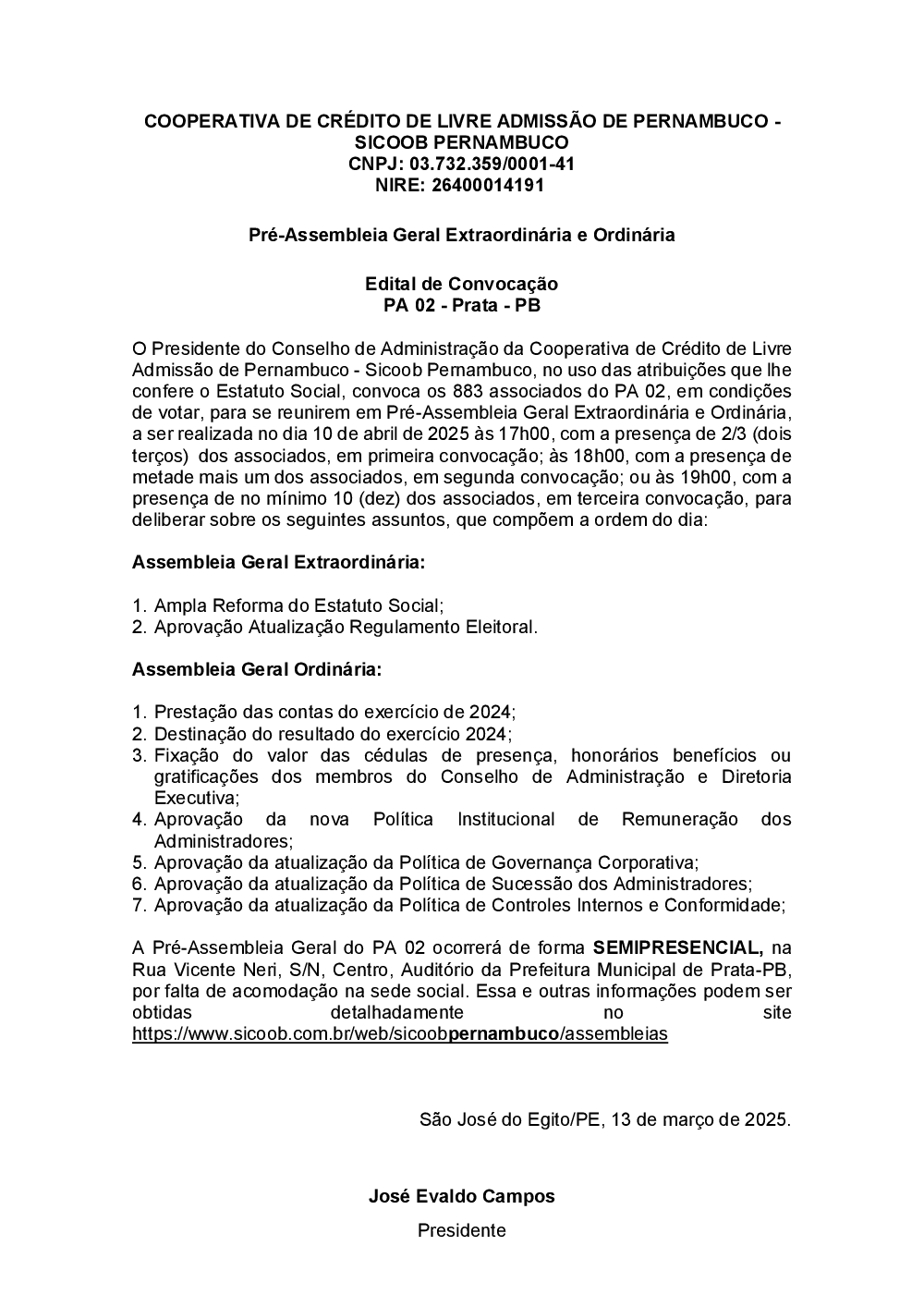 Assembleias - Sicoob Pernambuco