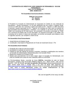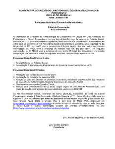 Editais das Pré-assembleias - Relatórios - Sicoob Pernambuco