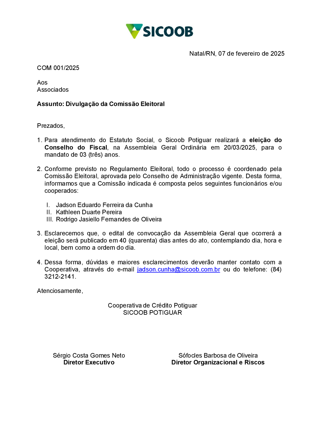 (Microsoft Word - COM 001.2025 - Divulgação da Comissão Eleitoral Cons. Fiscal - AGO.2025)
