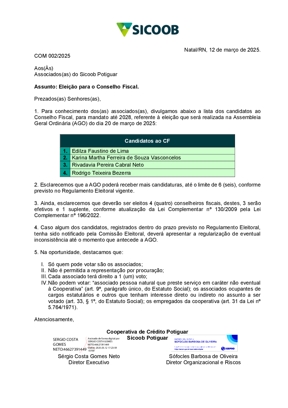 COM 002.2025 - DIVULGAÇÃO DOS CANDIDATOS Conselho Fiscal_Assinado.pdf