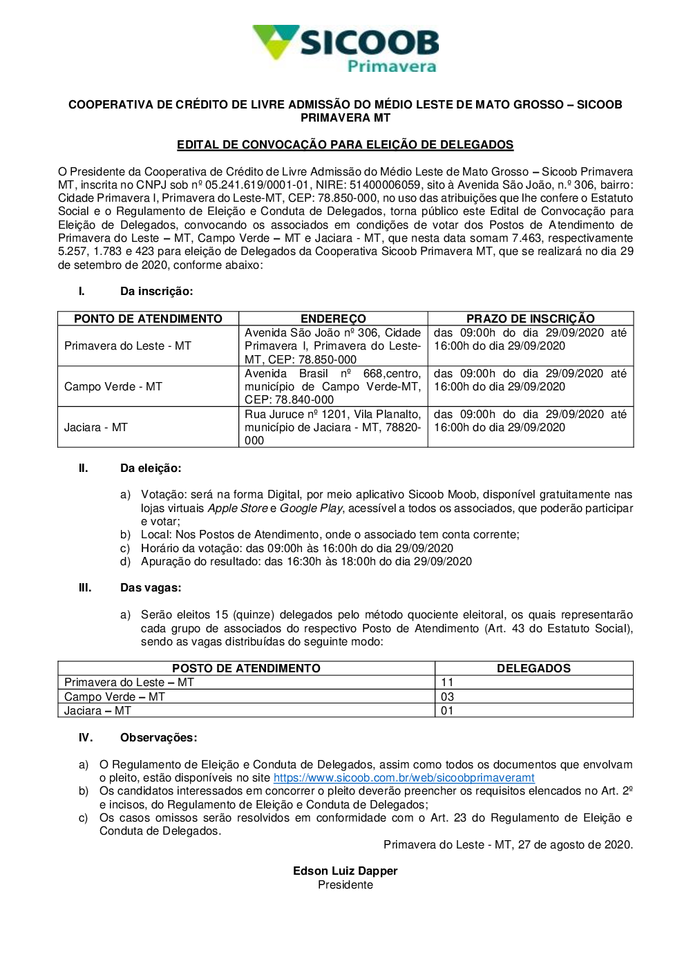 - Eleição de Delegados
