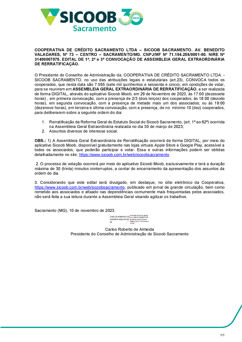 - EDITAL DE 1ª, 2ª e 3ª CONVOCAÇÃO DE ASSEMBLEIA GERAL EXTRAORDINÁRIA DE RERRATIFICAÇÃO.