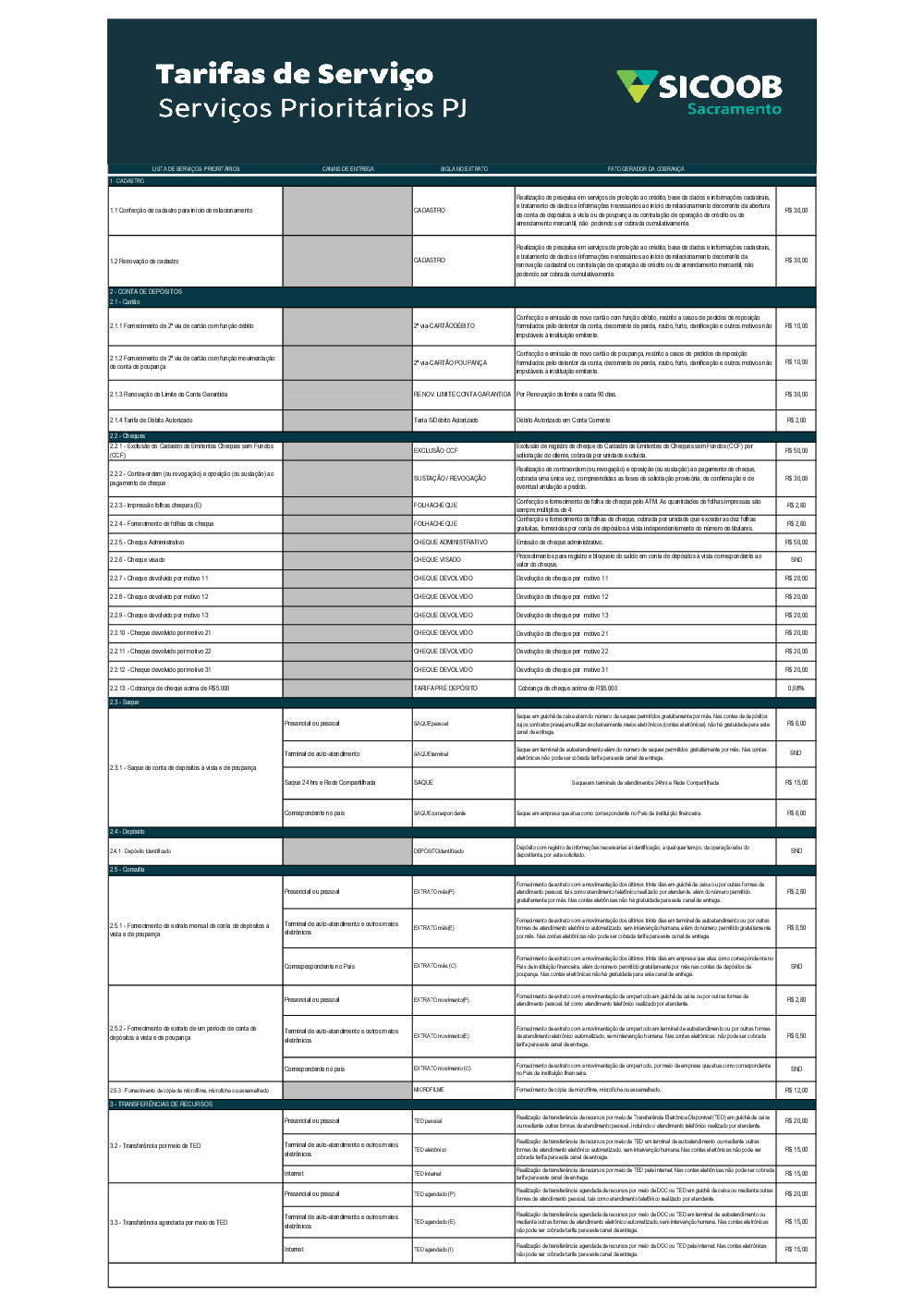 Tarifa Serviços Prioritários PJ