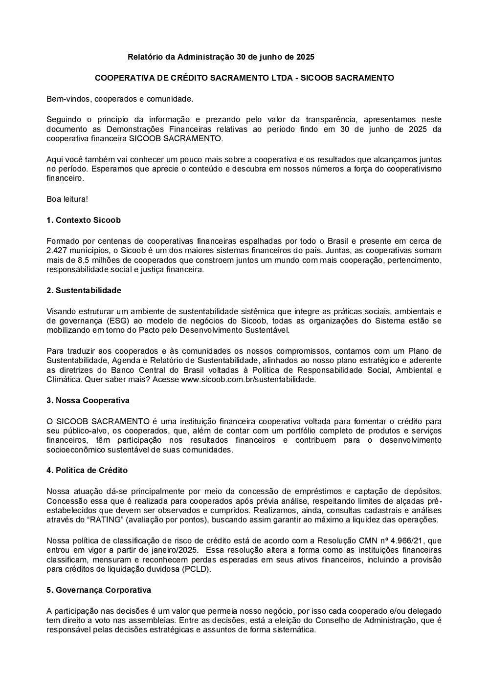 Relatórios - Sicoob Sacramento