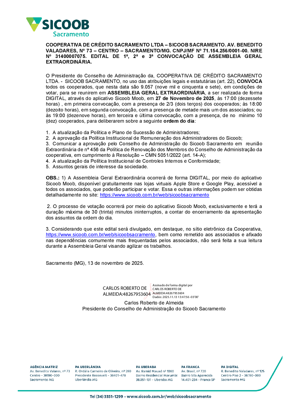 Correspondente Sicoob Sacramento