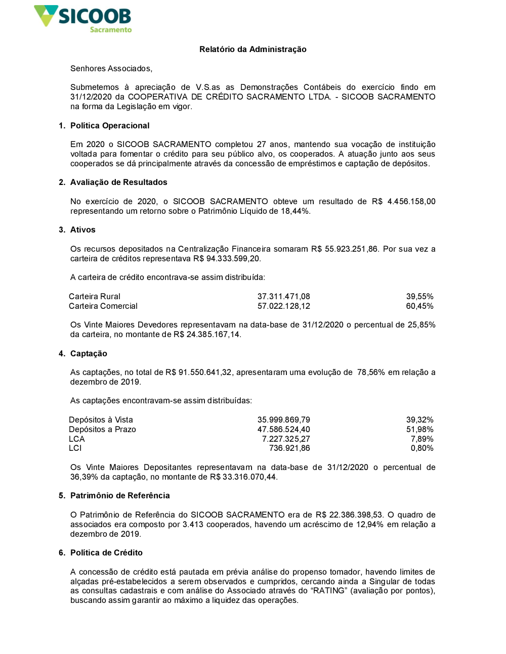 Relatórios - Sicoob Sacramento