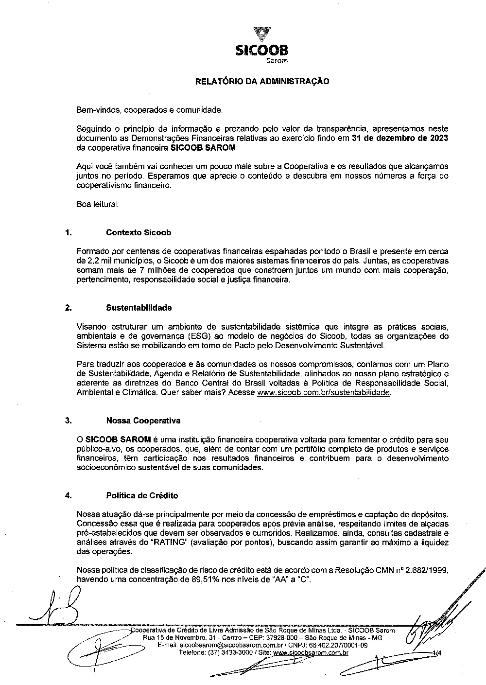 Demonstrações Contábeis Sicoob Sarom - Exercício 2023
