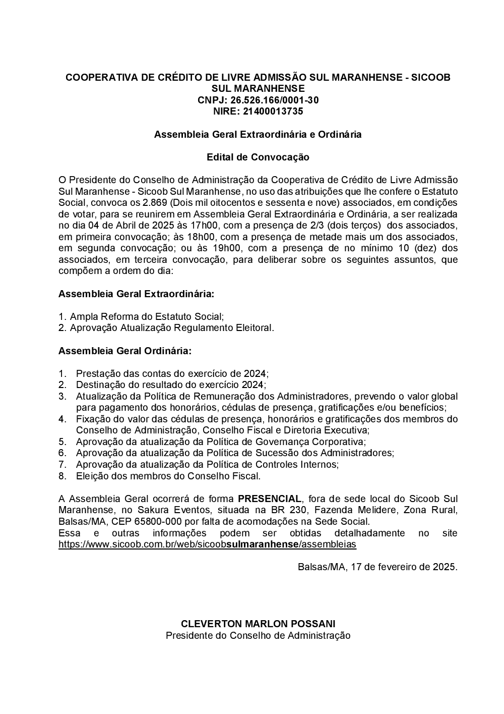 Assembleias - Sicoob Sul Maranhense