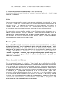Demonstrações Contábeis 2018 - Relatórios - Sicoob Tocantins