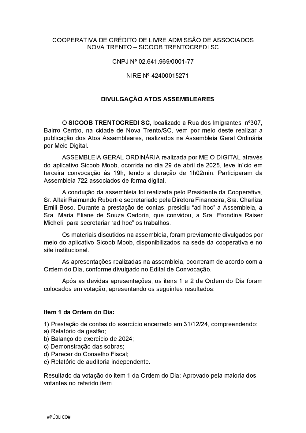 1. DIVULGAÇÃO ATOS ASSEMBLEARES