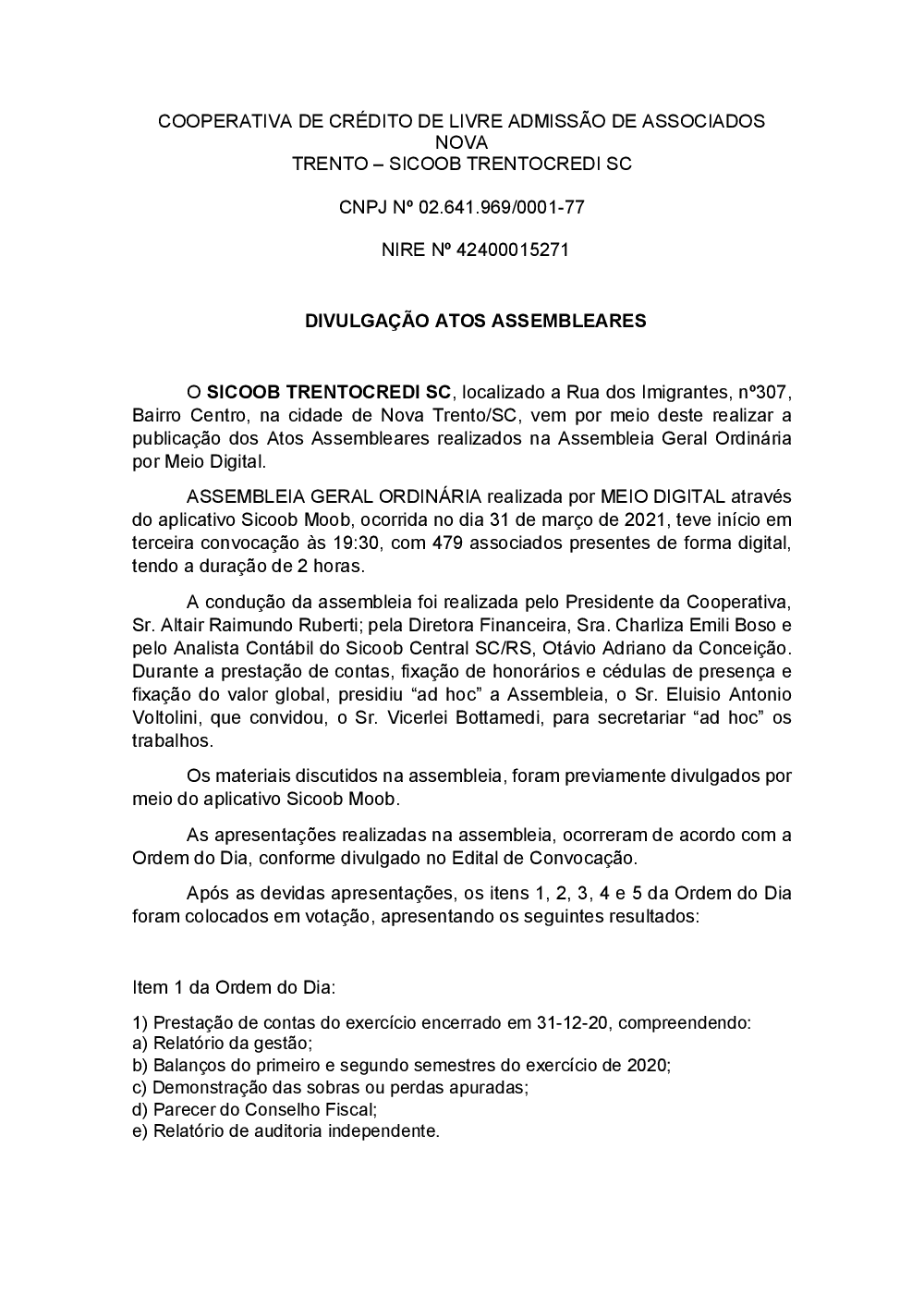 Transparência - Sicoob Trentocredi