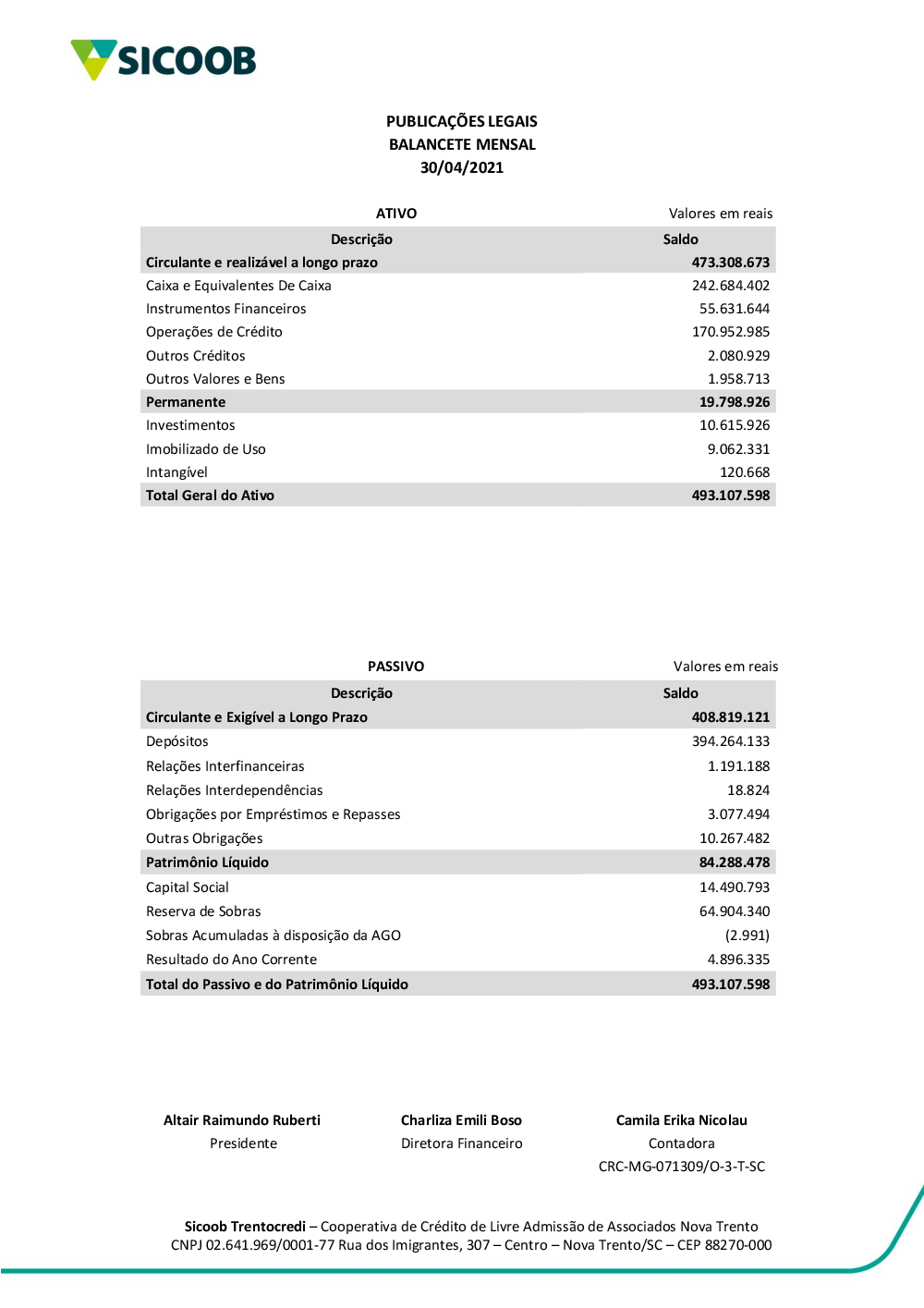 Transparência - Sicoob Trentocredi
