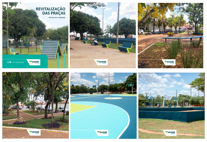 Assumindo um compromisso social com a sociedade uberabense, o Sicoob Uberaba adotou e é responsável pela manutenção das praças Absalão Gomes da Silva, no bairro Santa Marta e a praça Pôr do Sol, uma das maiores praças da cidade.