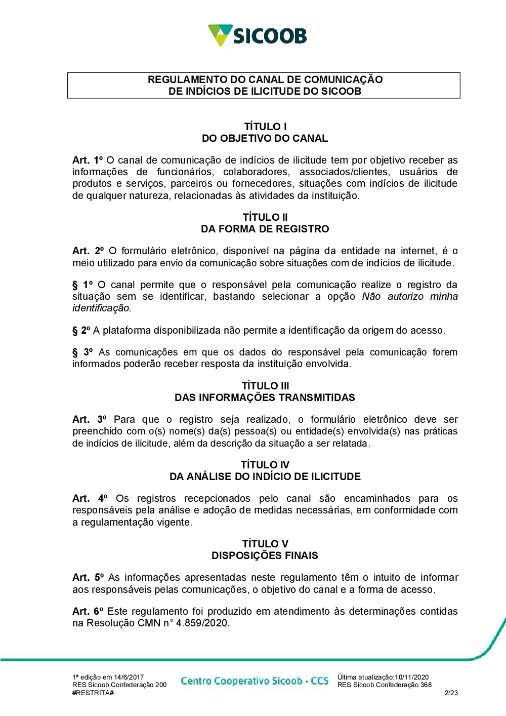Regulamento do Canal de Comunicação de Indídios de Ilicitude do Sicoob.pdf