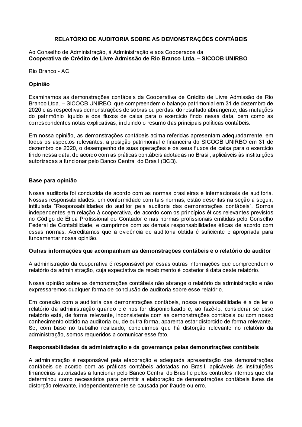 Microsoft Word - MINUTA - Relatório de Opinião - Sicoob UNIRBO - 31.12.20