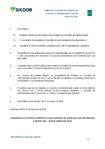 6. Comunicação da aprovação, pelo Conselho de Administração do Sicoob União dos Vales (RCA de 24/02/2026), da Política de Renovação dos Membros do Conselho de Administração desta Cooperativa, em cumprimento à Resolução CMN nº 5.051/2022 (art. 14-A).