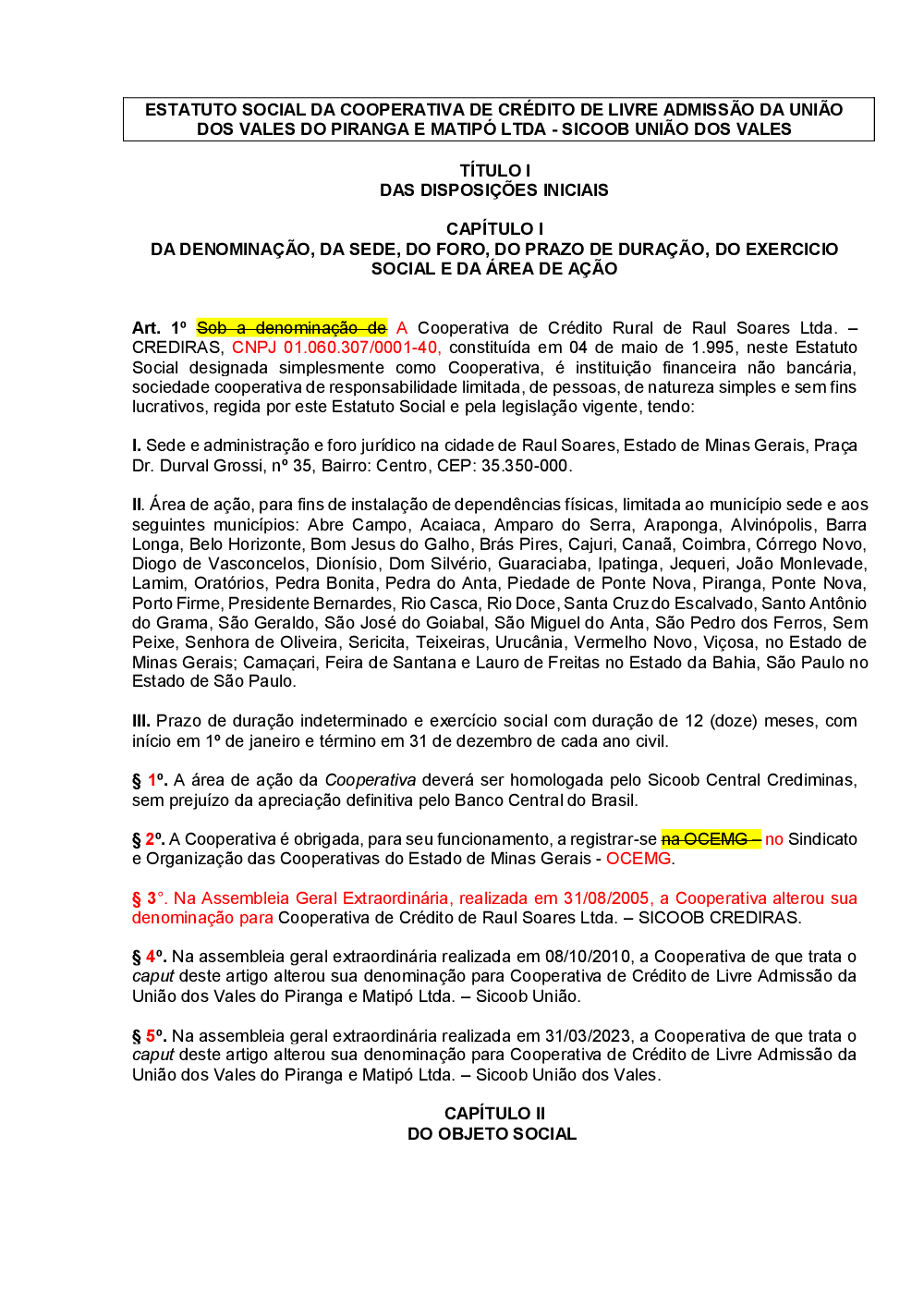 COOPERATIVA DE CRÉDITO DE LIVRE ADMISSÃO DA UNIÃO DOS VALES DO PIRANGA E MATIPÓ LTDA. – SICOOB UNIÃO DOS VALES