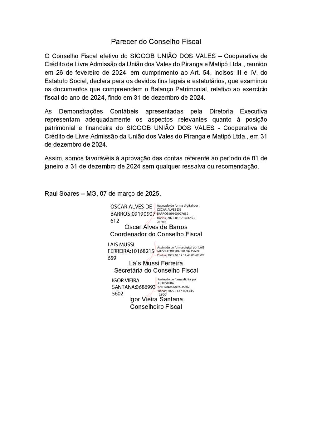COOPERATIVA DE CRÉDITO DE LIVRE ADMISSÃO DA UNIÃO DOS VALES DO PIRANGA E MATIPÓ LTDA. – SICOOB UNIÃO DOS VALES