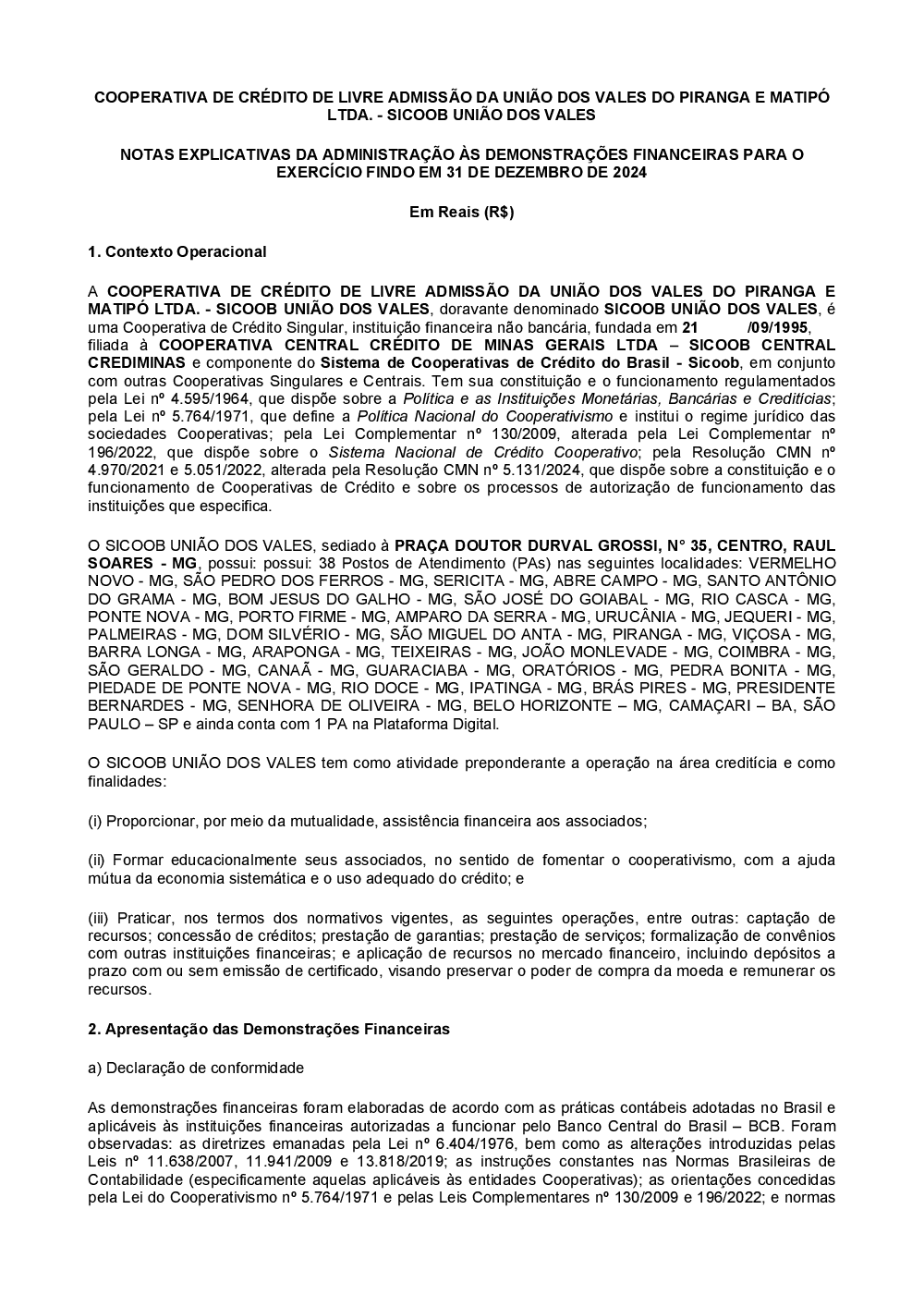 COOPERATIVA DE CRÉDITO DE LIVRE ADMISSÃO DA UNIÃO DOS VALES DO PIRANGA E MATIPÓ LTDA. – SICOOB UNIÃO DOS VALES