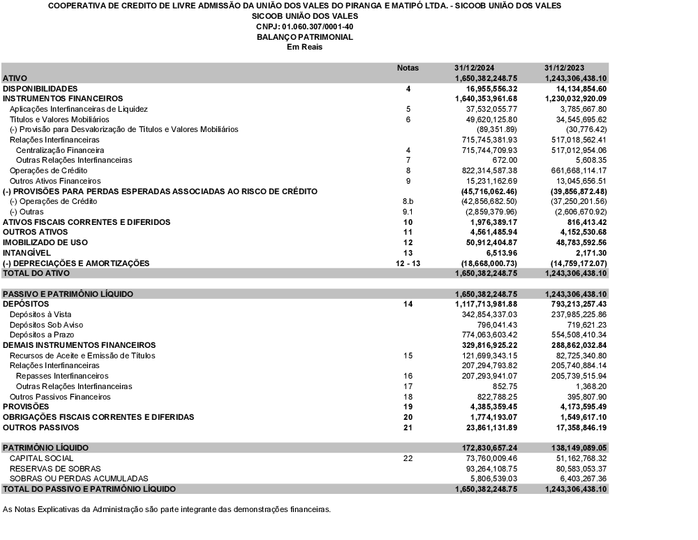 - d) Demonstrativo das sobras apuradas da sociedade no exercício de 2024.