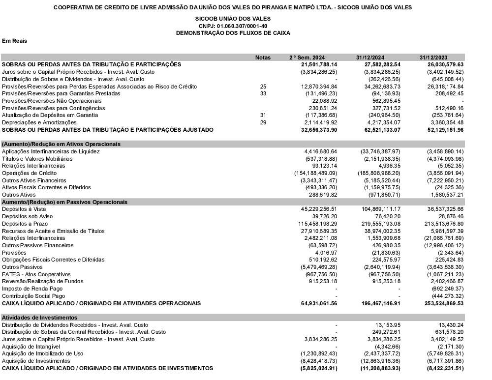 - b) Balanços elaborados no primeiro e segundo semestres do exercício social de 2024;