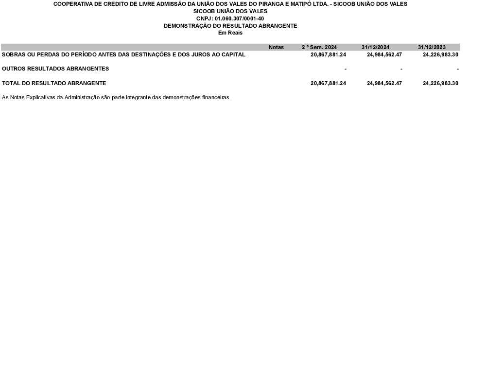 - d) Demonstrativo das sobras apuradas da sociedade no exercício de 2024.