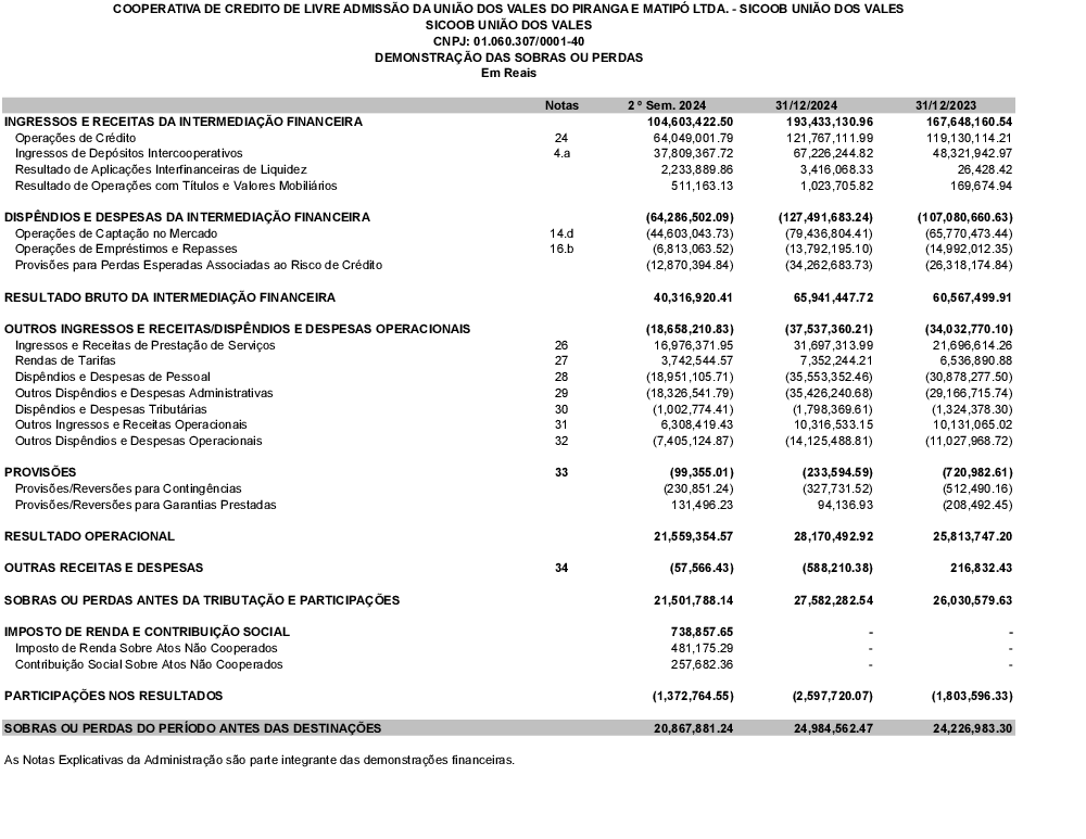 - d) Demonstrativo das sobras apuradas da sociedade no exercício de 2024.