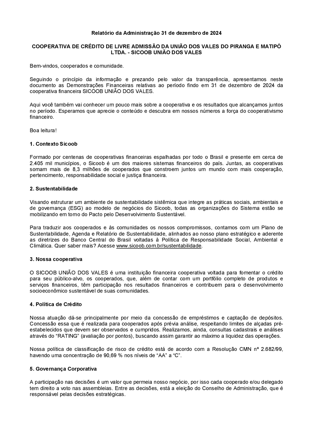 - Este edital será publicado com antecedência mínima de 10 (dez) dias corridos e divulgado com destaque no site do Sicoob União dos Vales ou em repositório público irrestrito. Não será feita sua leitura durante a Assembleia para agilizar os trabalhos.
